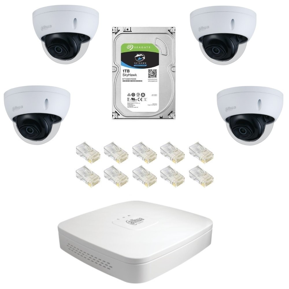 Sistem de supraveghere IP Dahua DH-4CINT30MIP-5MPA cu 4 camere dome de 5MP, IR 30m, POE, IK10, IP67