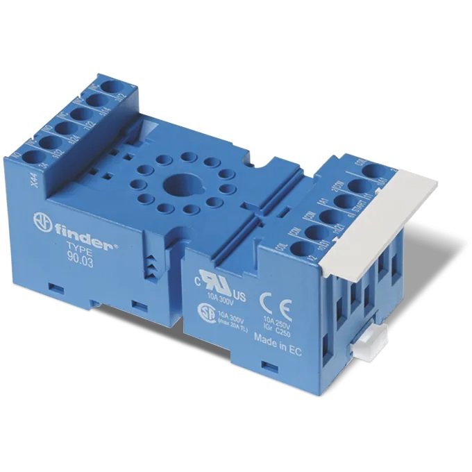 Soclu Tipul 90.03 cu terminale de conexiune cu șurub, mod de montare pe panou sau șină de 35mm (EN 60715), pentru utilizare cu relee Tipul: 60.13.