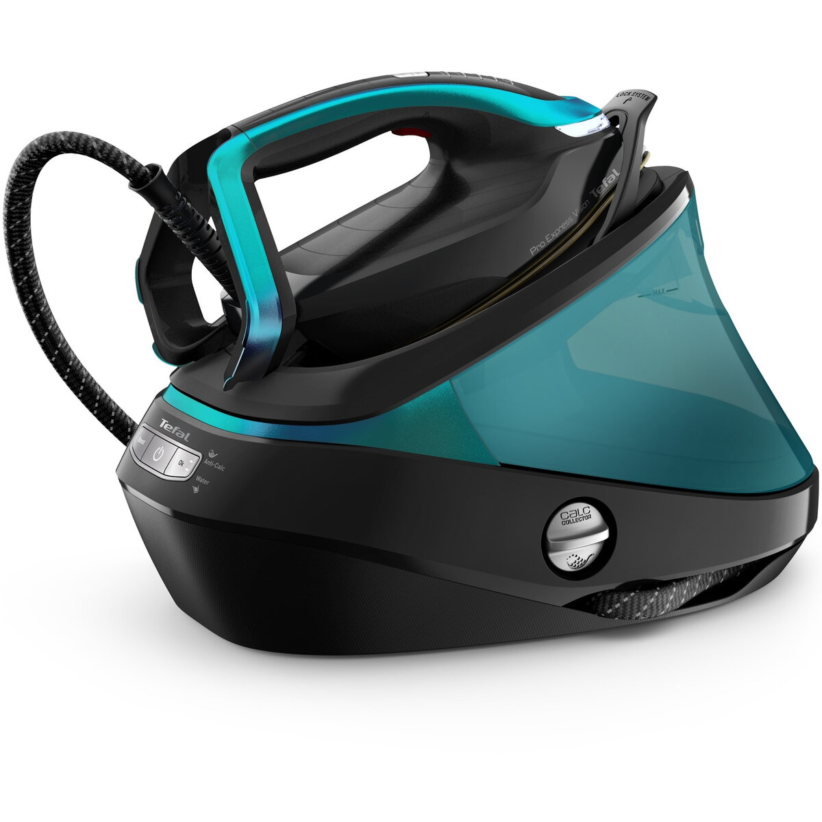 Statie de calcat Tefal Pro Express Vision GV9822E1, 3000W, 9 bari, jet de aburi 750 g/min, abur variabil 180 g/min, talpa Durilium Airglide Autoclean, rezervor apa 1.2L, oprire automata, negru & albastru