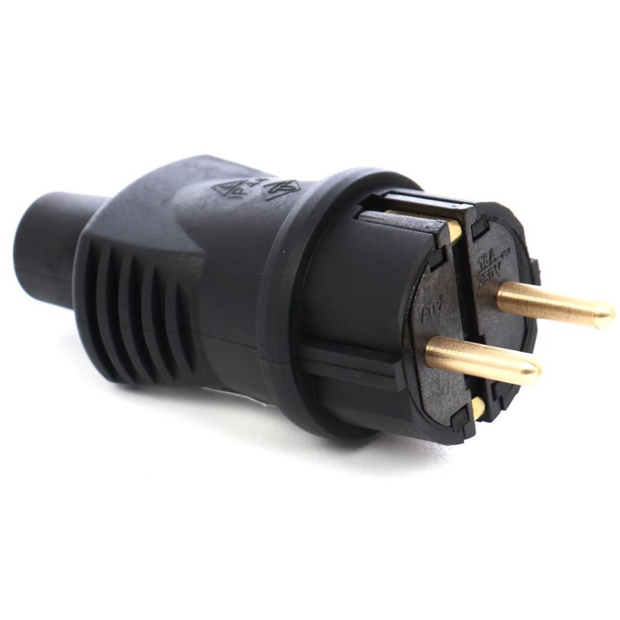 Stecher monofazic cauciucat, cu protectie contra prafului si al apei IP44, 16A, 250 V, puterea max 3520 W.