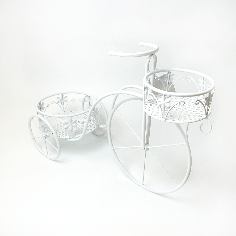 Suport flori bicicleta, metal, alb, 56 x 25 x 35 cm