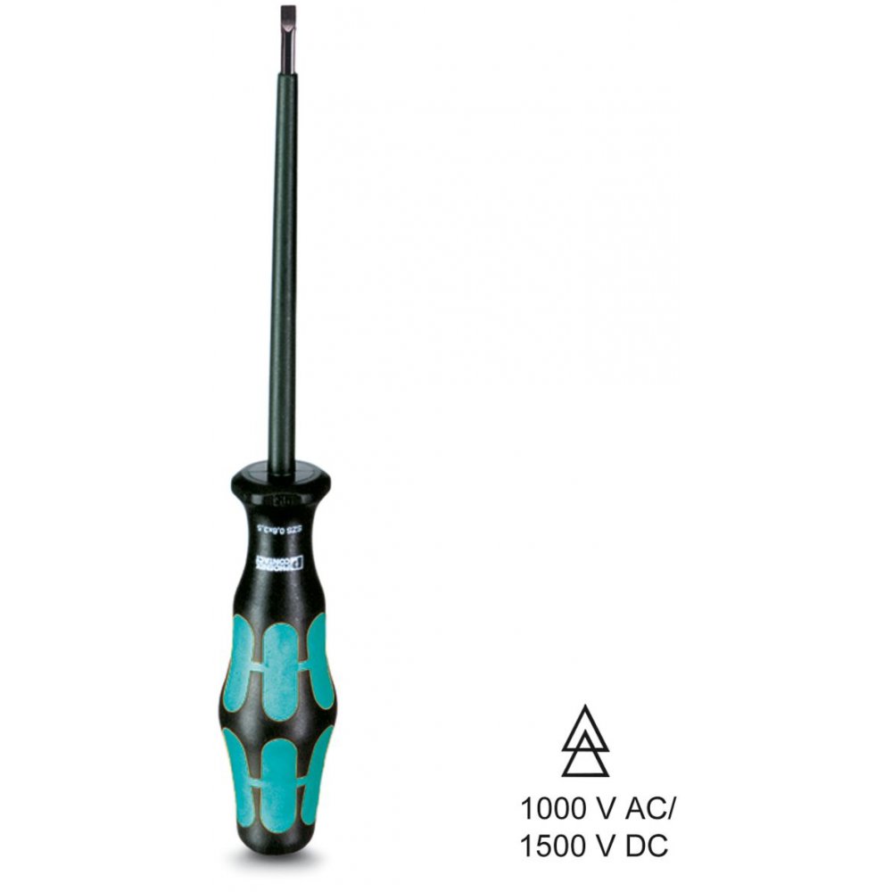 Șurubelniță, cu cap cu cap, izolat VDE, dimensiune: 1,2 x 8,0 x 175 mm, mâner bicomponent, cu mâner anti-alunecare Latime: 40 mm Latimea lamei: 8
