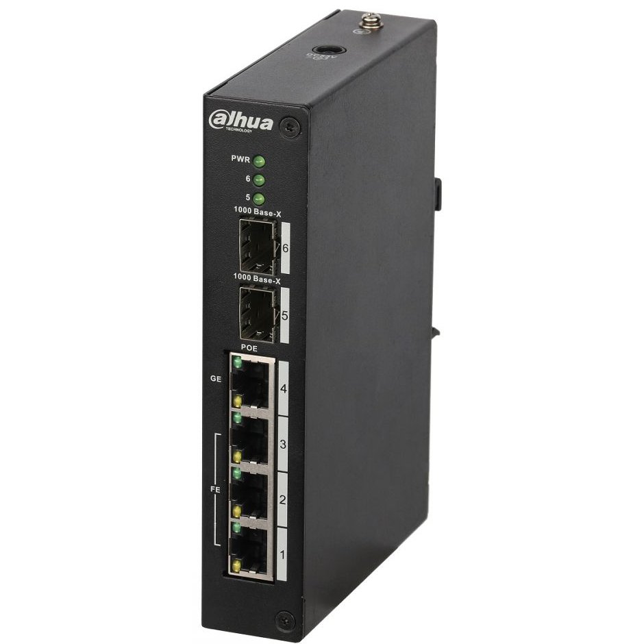 Switch 4 porturi PoE Dahua PFS4206-4P-96 cu management, 2 porturi gigabit prin FO, 96W, Hi-PoE