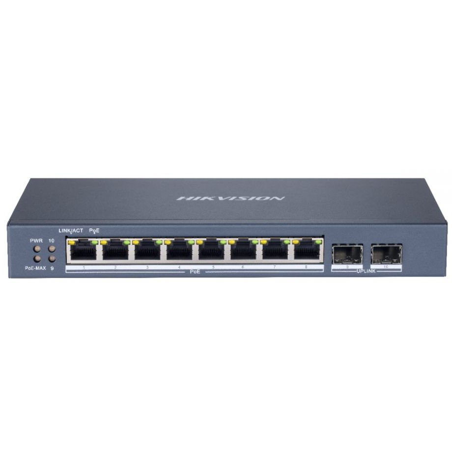 Switch 8 porturi Gigabit Hikvision DS-3E1510P-SI, L2, Smart Managed, 8 × Gigabit PoE ports si 2 × Gigabit fiber optical ports, 802.3af/at, PoE power