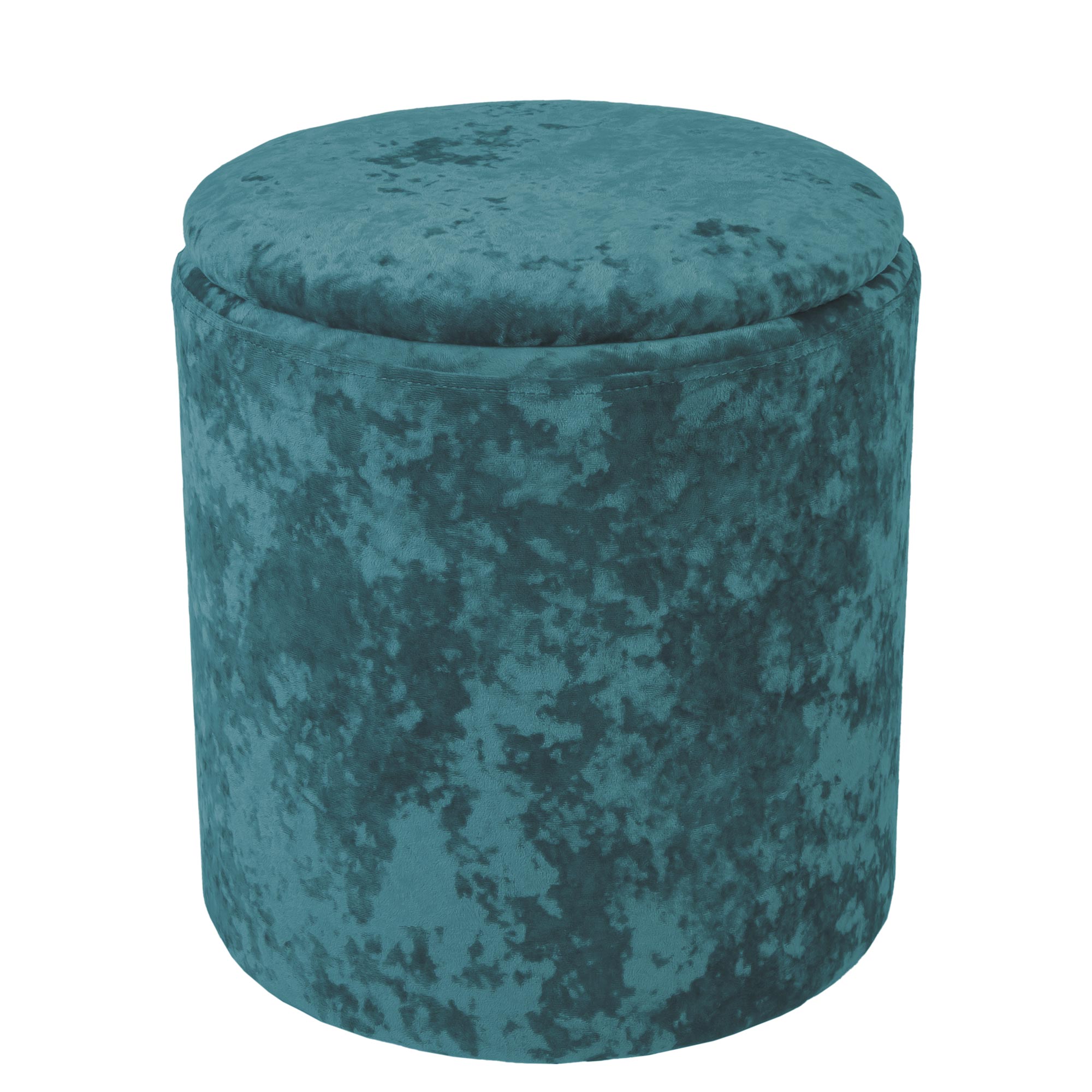 Taburet Nadia, catifea turcoaz E22, cu spatiu depozitare, rotund, 37 x 37 x 42 cm