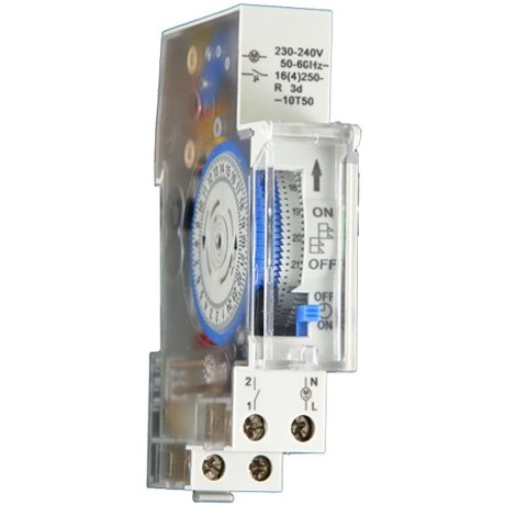 Întrerupătorul temporizator analogic SUL180a, 24 de ore, DIN RAL, este potrivit pentru încălzitoare de apă, dozatoare de apă, felinare stradale