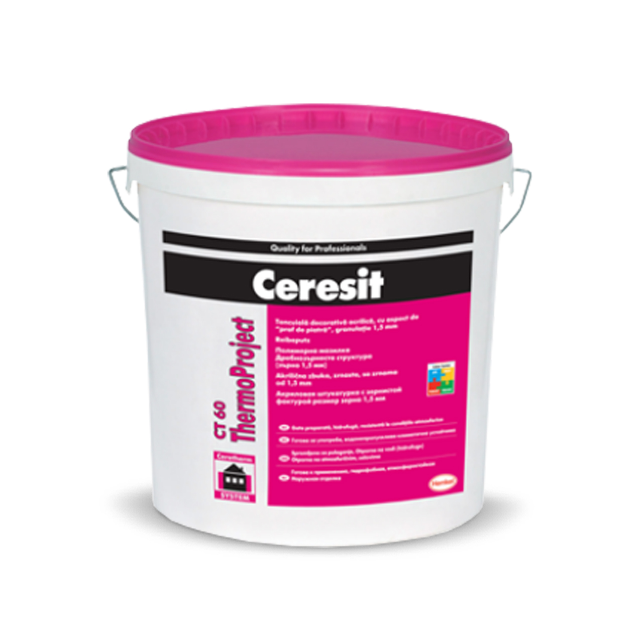 Tencuiala decorativa acrilica Ceresit CT 60 Thermo Project, aspect praf de piatra, alb natural, interior/exterior, 25 kg