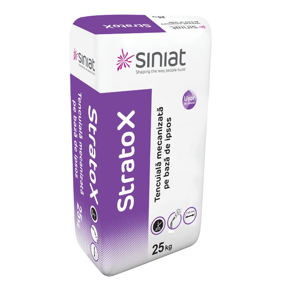Tencuiala mecanizata pe baza de ipsos Adera Strato, este destinat proiectelor pentru interior. In combinatie cu apa, se formeaza o pasta omogena cu timp de lucru extins, usor de aplicat si preparat, cu o plasticitate excelenta si productivitate mare. Produsul este ideal pentru obtinerea de tencuiiel...