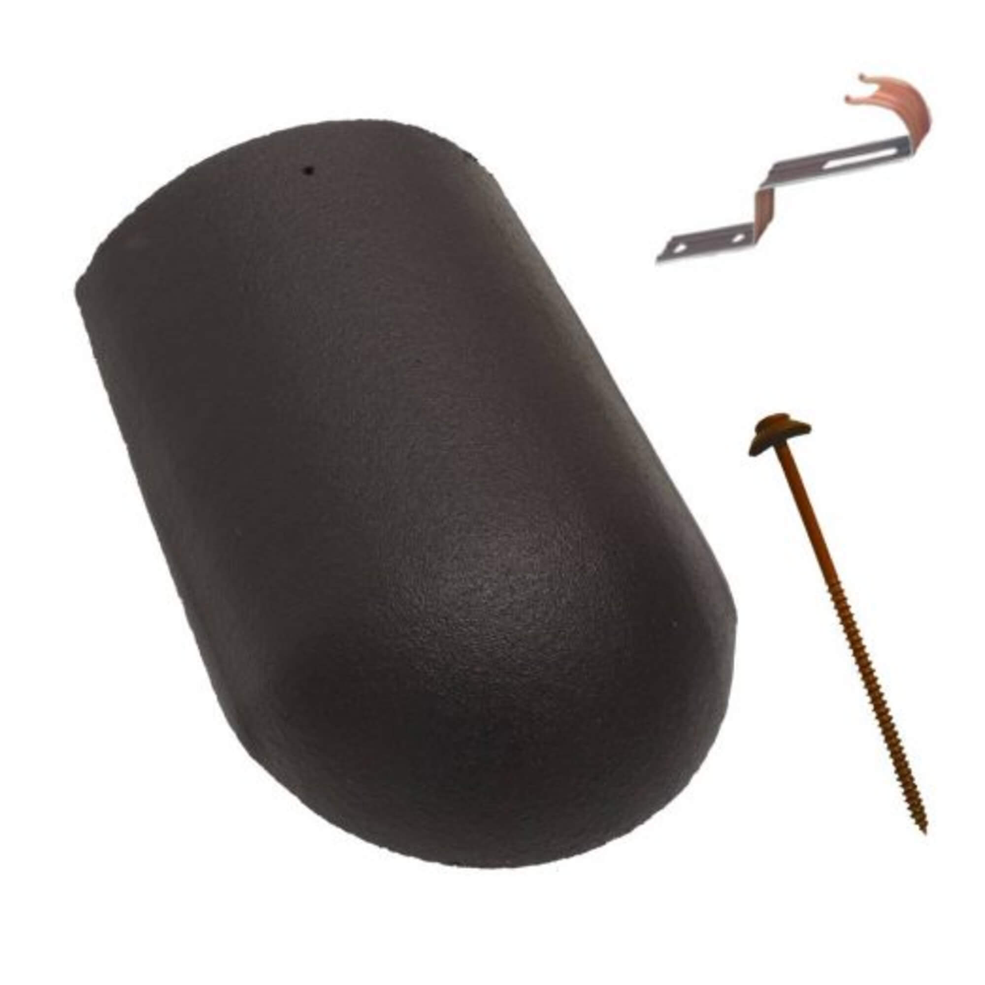 Tigla de coama de inceput Terran Danubia + clema de fixare, negru, 240 x 370 mm, 3.2 kg/buc