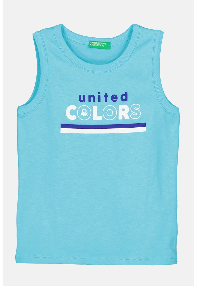 Top de bumbac cu imprimeu pe piept - Turcoaz