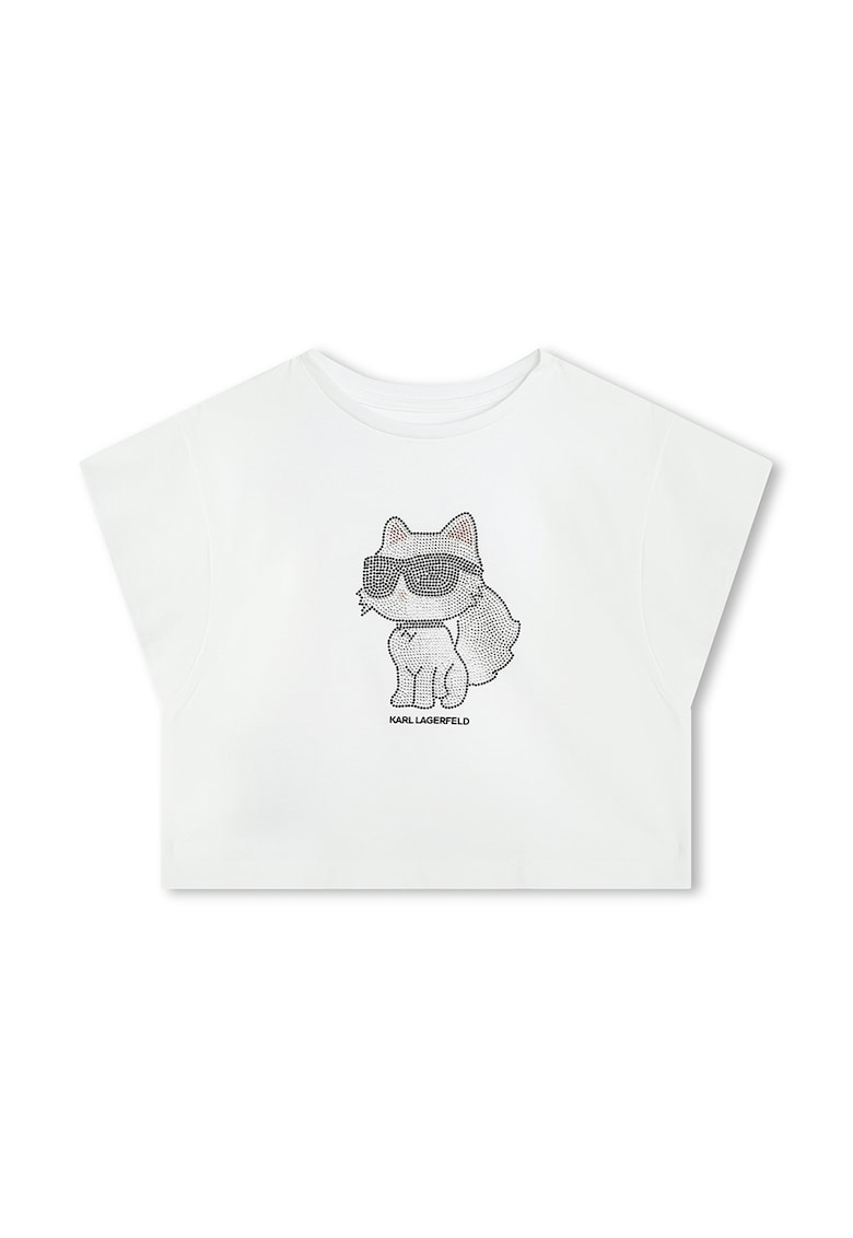 Tricou crop din bumbac cu strasuri - Alb