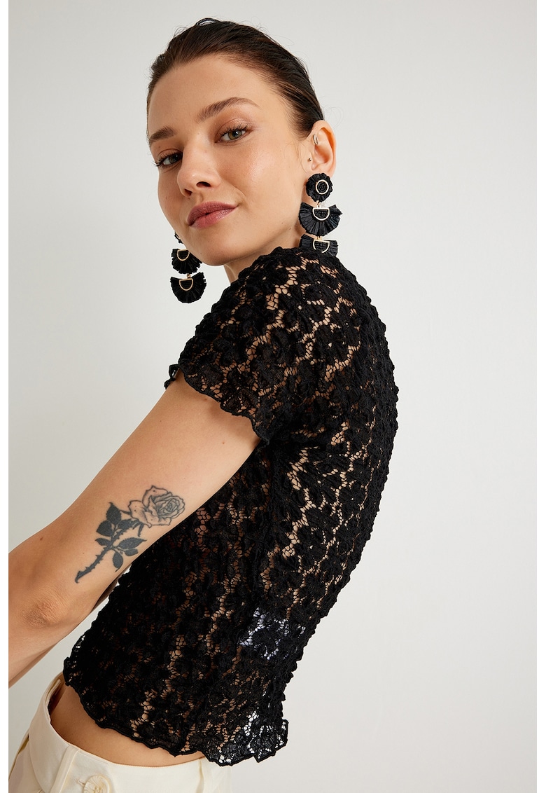 Tricou crop din dantela
