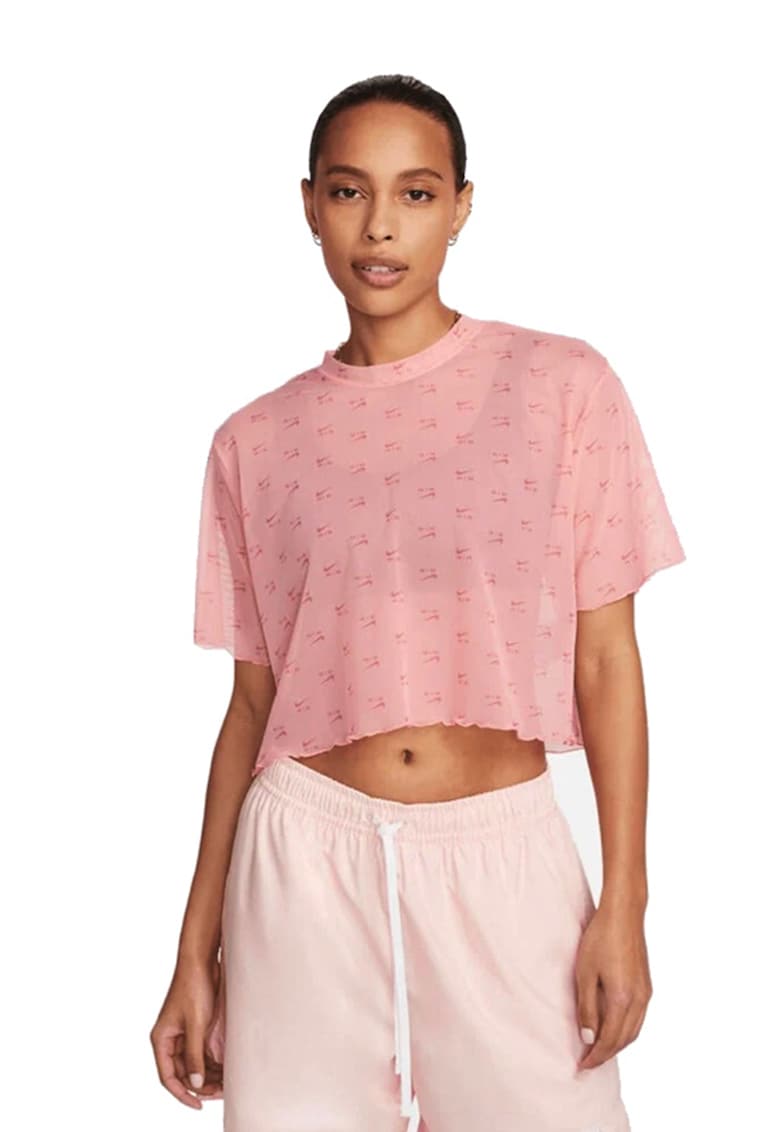 Tricou crop din plasa cu imprimeu logo Air - Roz pal