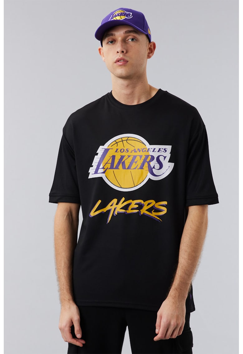 Tricou cu decolteu la baza gatului LA Lakers NBA Script - Negru/Galben/Ametist