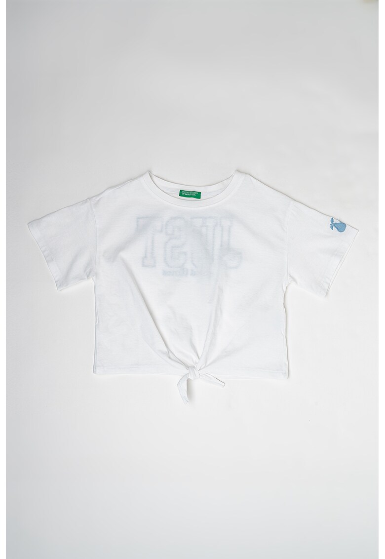 Tricou cu decolteu la baza gatului si broderie - Alb
