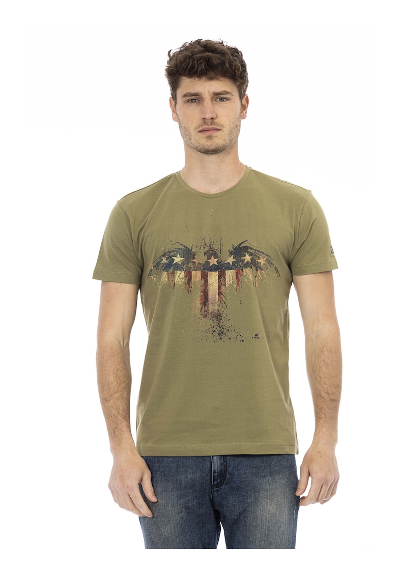 Tricou cu decolteu la baza gatului si imprimeu grafic - Verde