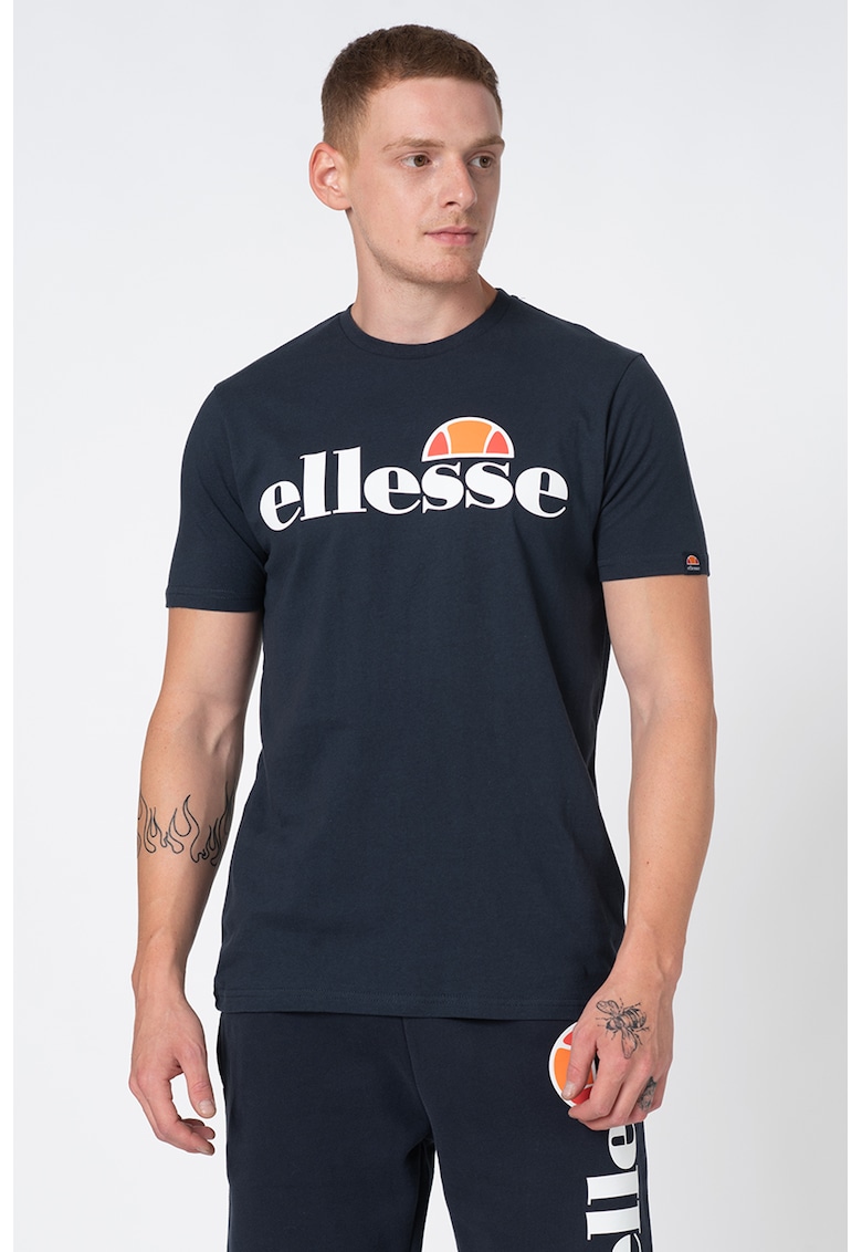 Tricou cu decolteu la baza gatului si imprimeu logo Prado - Bleumarin