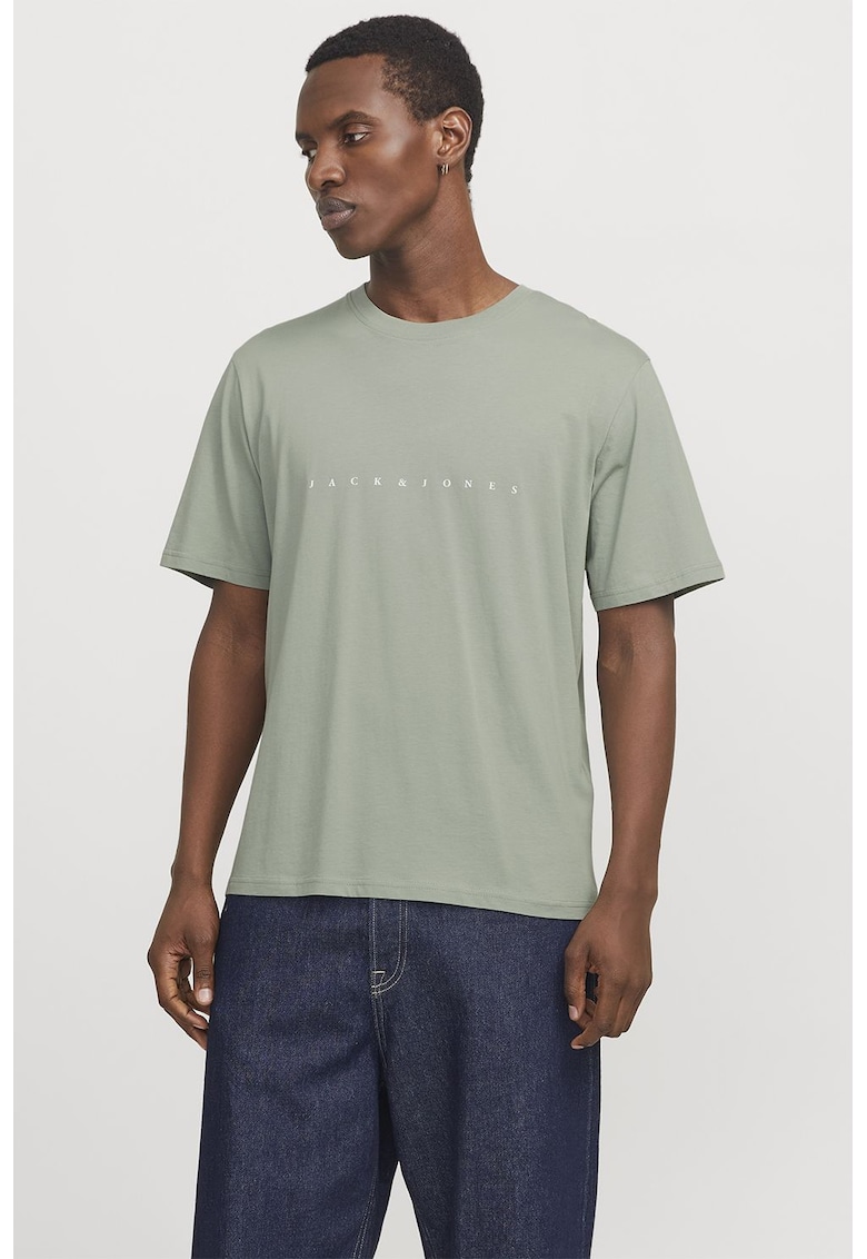 Tricou cu decolteu la baza gatului si imprimeu logo - Verde deschis