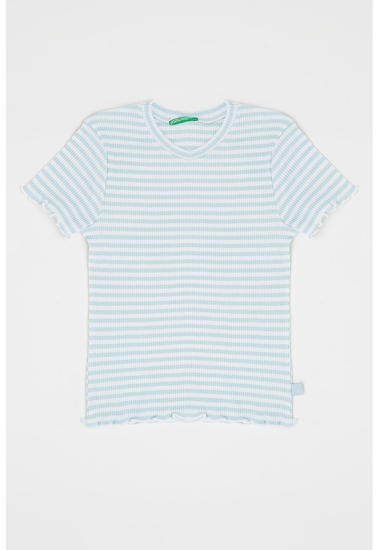 Tricou cu decolteu la baza gatului si model in dungi - Alb/Turcoaz