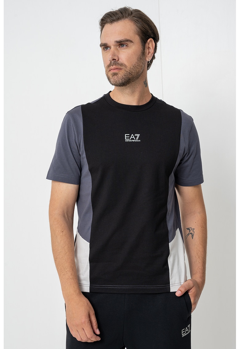 Tricou cu design colorblock - pentru fitness - Negru/Gri carbune/Alb murdar