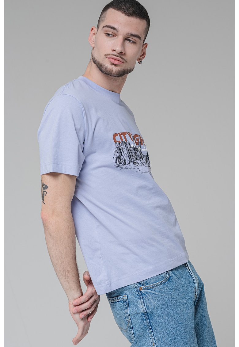 Tricou cu model grafic si decolteu la baza gatului - Lila