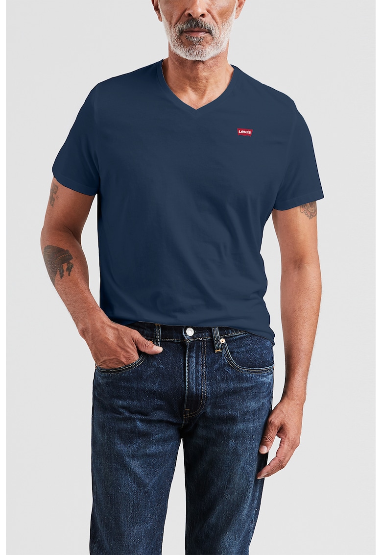 Tricou de bumbac cu decolteu in V - Bleumarin