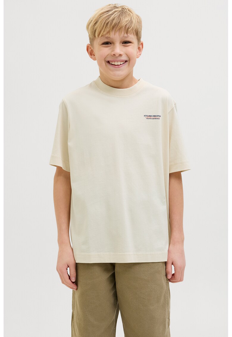 Tricou de bumbac cu imprimeu text - Verde pal/Bleumarin