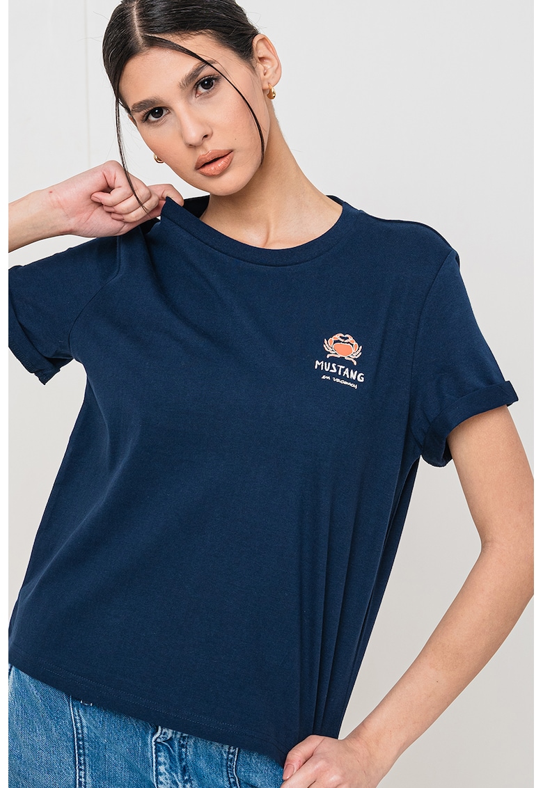 Tricou de bumbac cu logo - Bleumarin