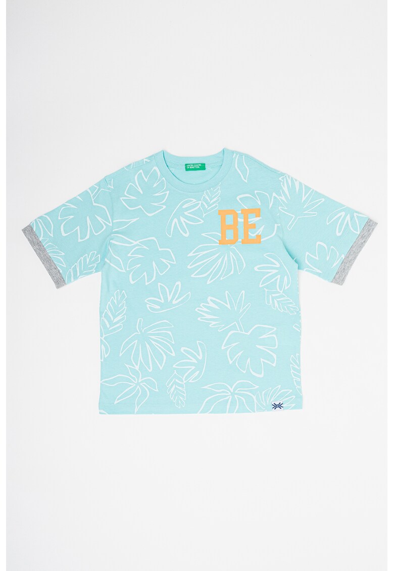 Tricou de bumbac cu model tropical - Turcoaz