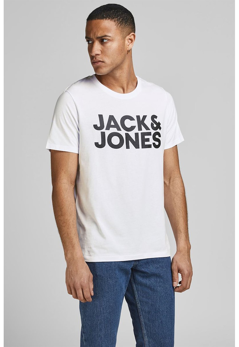 Tricou de bumbac organic cu detaliu cu imprimeu logo cauciucat - Alb/Negru
