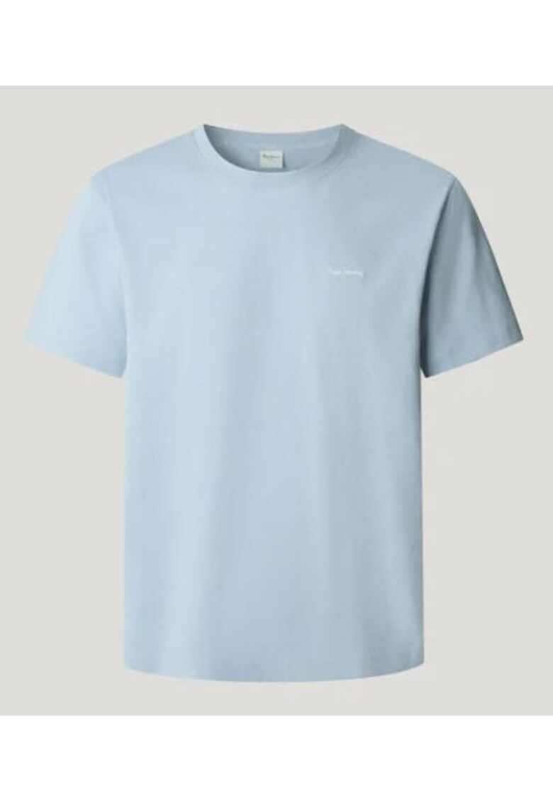 Tricou din amestec de bumbac cu decolteu la baza gatului - Albastru deschis