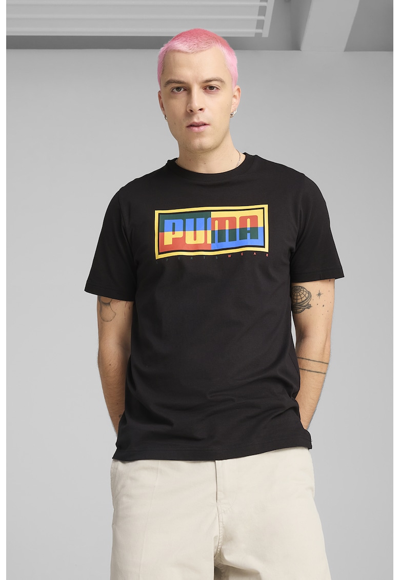 Tricou cu decolteu la baza gatului si imprimeu logo - Negru