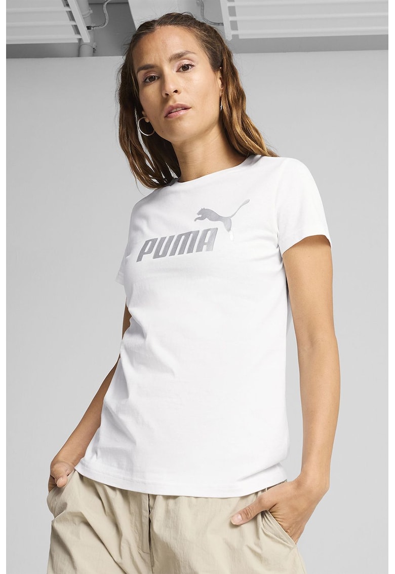 Tricou din bumbac cu imprimeu logo - Alb optic/Argintiu