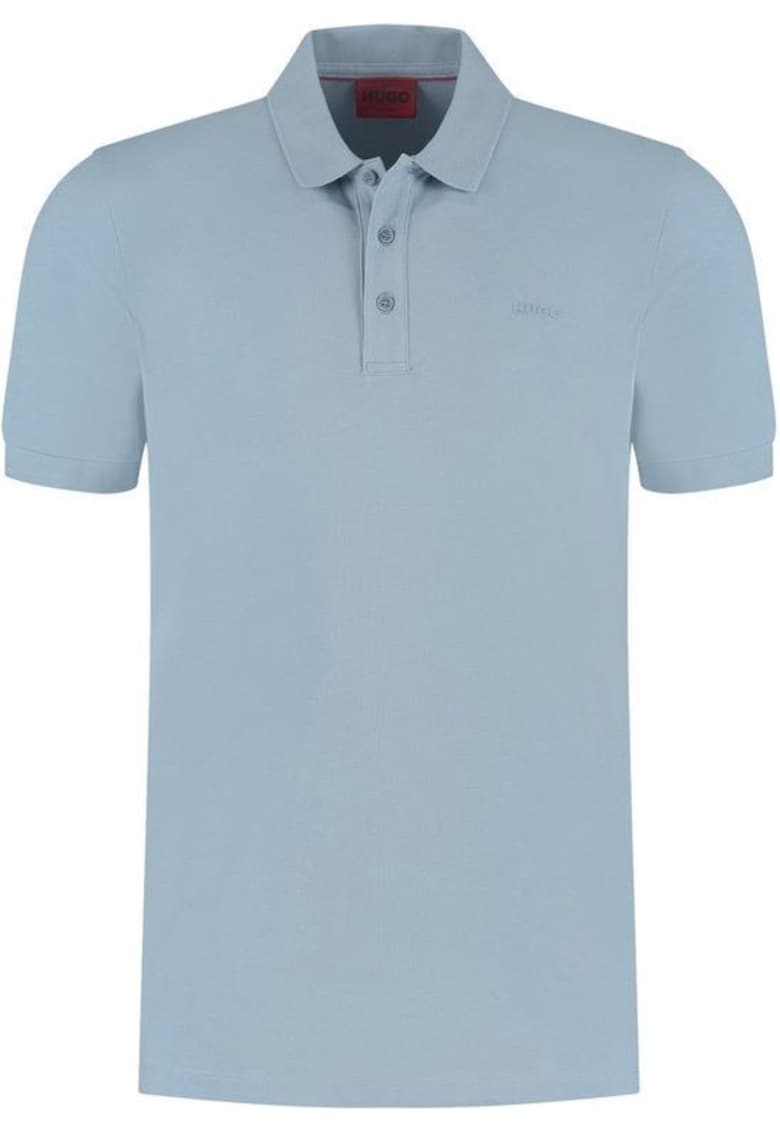Tricou simplu din bumbac cu guler polo - Albastru azur