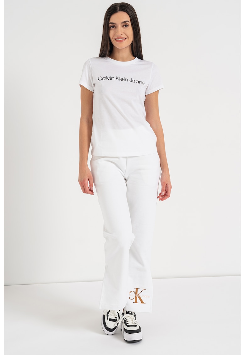 Tricou slim fit cu decolteu la baza gatului - Alb