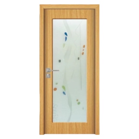 Usa Interior din MDF Novo Doors ND110, Cadru din Lemn Masiv, Geam Sablat, KIT COMPLET, Toc , Manere si balamale incluse (Culoare: Stejar Deschis, Dimensiune: 60 cm, Toc: Fix, Maner: Patrat auriu inchidere magnetica)