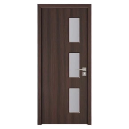 Usa Interior din MDF Novo Doors ND316, Cadru din Lemn Masiv, Geam Sablat, KIT COMPLET, Toc , Manere si balamale incluse (Culoare: Wenge, Dimensiune: 70 cm, Toc: Fix, Maner: Patrat auriu inchidere magnetica)