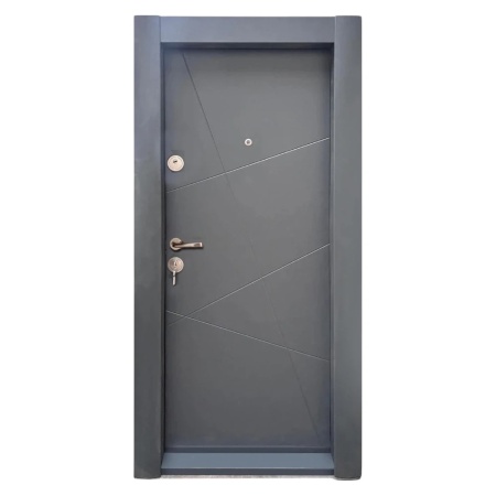 Usa metalica de apartament cu izolatie si vizor Novo Doors First Class NDS15, Cu toc imbracat si folie PVC, Deschidere Stanga Dreapta, Dimensiune 200X88 cm, Tabla 1.2 mm, Kit complet, Gri antracit (Sens deschidere: Stanga)