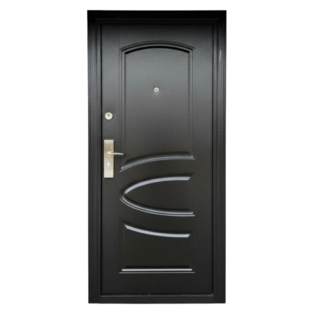 Usa metalica de exterior cu izolatie si vizor Novo Doors ND7005 , 2 yale,tabla 0,7 mm, balamale si clanta incluse, toc de 7 centimetri, pentru casa si apartament, Maron lovitura de ciocan (Sens deschidere: Dreapta)
