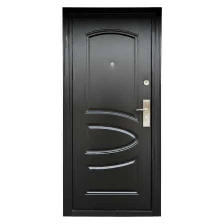 Usa metalica de exterior cu izolatie si vizor Novo Doors ND7005 , 2 yale,tabla 0,7 mm, balamale si clanta incluse, toc de 7 centimetri, pentru casa si apartament, Maron lovitura de ciocan (Sens deschidere: Stanga)