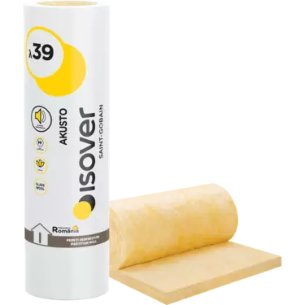 Vata minerala de sticla Isover Akusto, necaserata, 9 m²/rola, 100 x 600 x 7500 mm