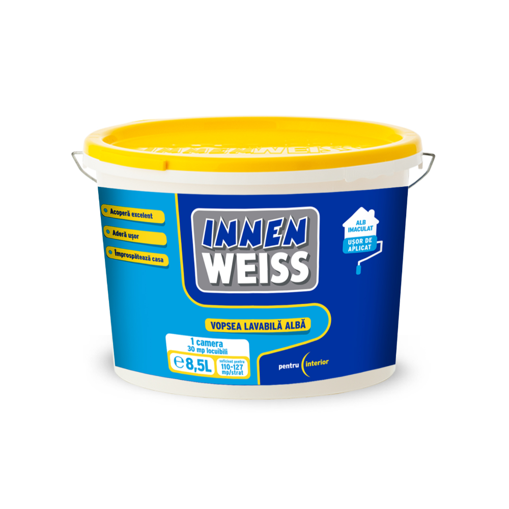 Vopseaua lavabila pentru interior Innenweiss este destinata finisarii decorative si de protectie a peretilor interiori si tavanelor, pe suporturi minerale de gleturi, gips-carton, var-ciment, beton s.a. Este o vopsea cu aplicabilitate foarte buna, cu putere mare de acoperire si aderenta crescuta la ...