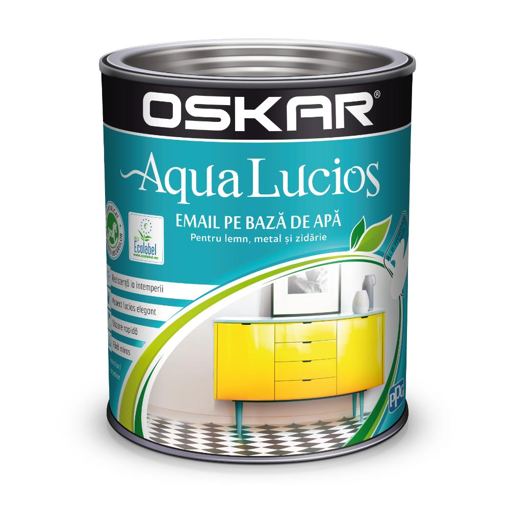 Vopsea pentru lemn/metal/zidarie Oskar Aqua Lucios, interior/exterior, pe baza de apa, alb murdar perla, 0.6 l