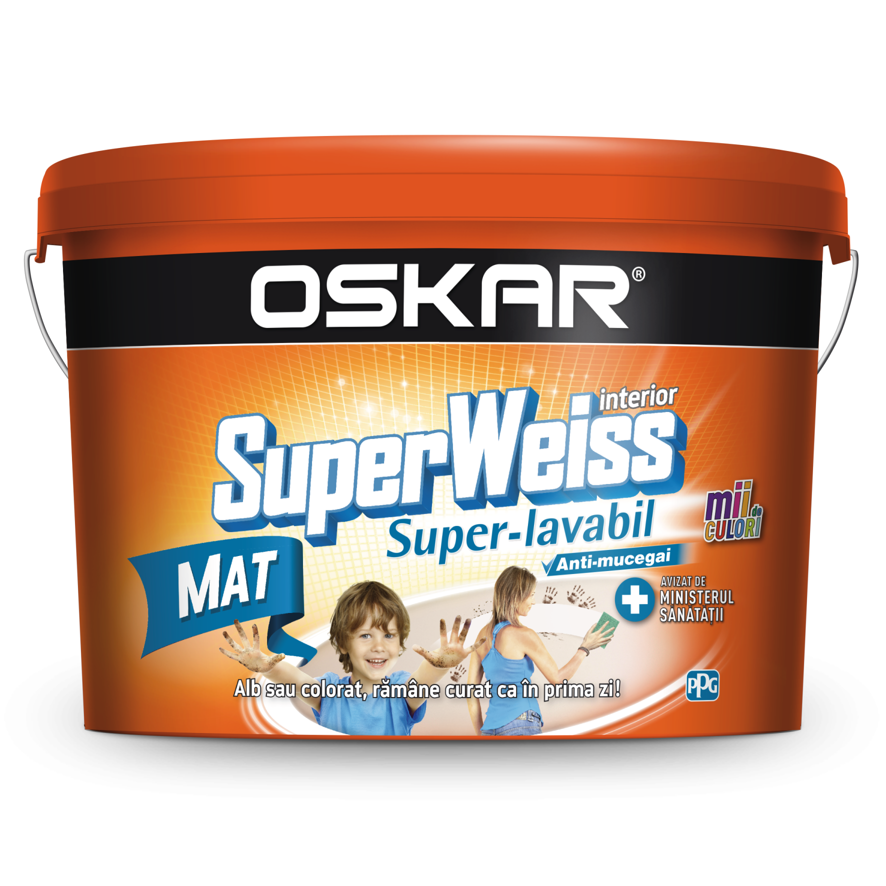 Vopsea Super-Lavabila de interior Oskar SuperWeiss, anti-mucegai, alb mat 8.5l