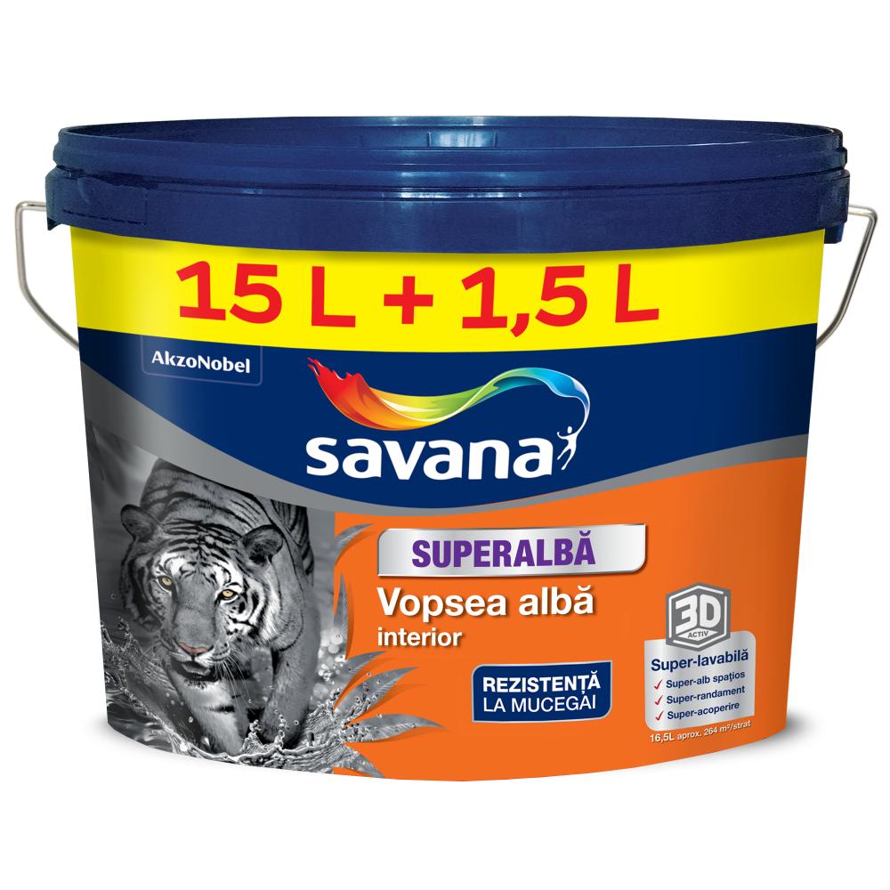 Vopsea superlavabila interior Savana 3D Activ, cu rezistenta la mucegai, alb, 15 l + 1.5 l