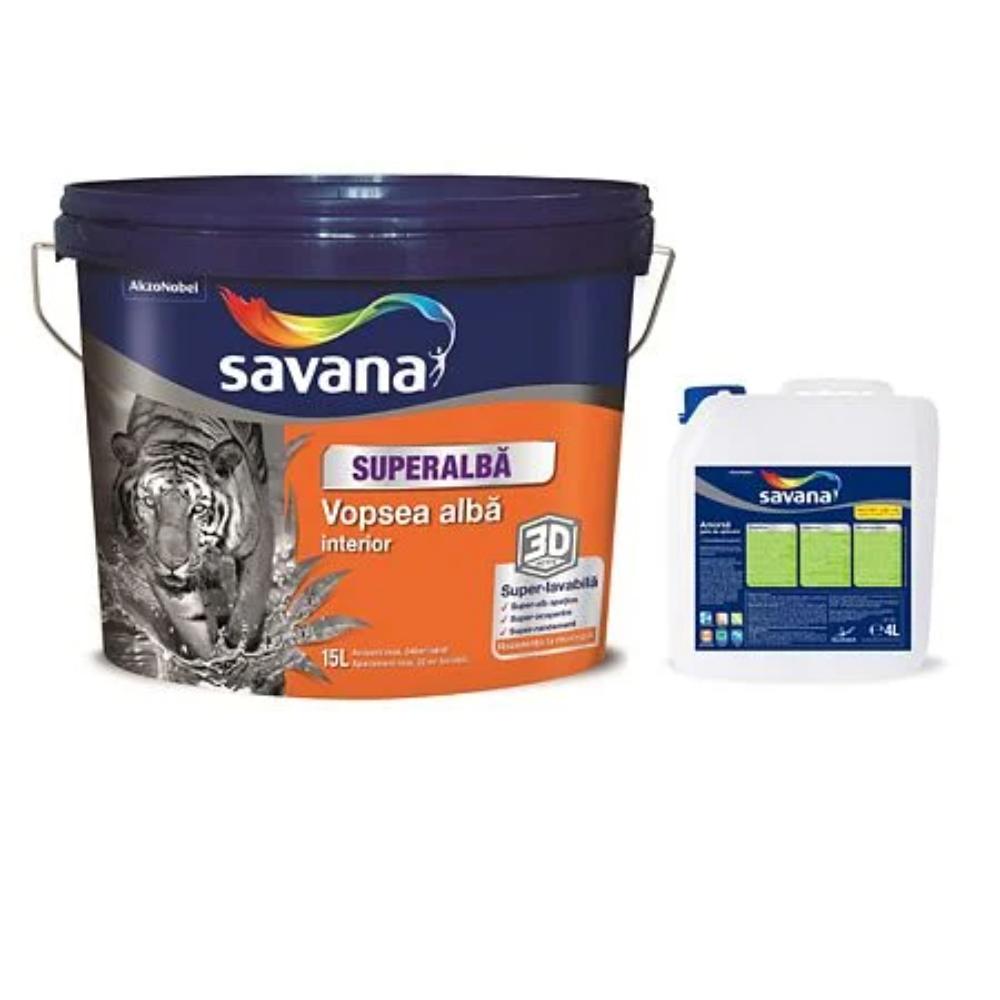 Vopsea superlavabila interior, Savana, rezistenta la mucegai, alb, 15 l + amorsa 4 l