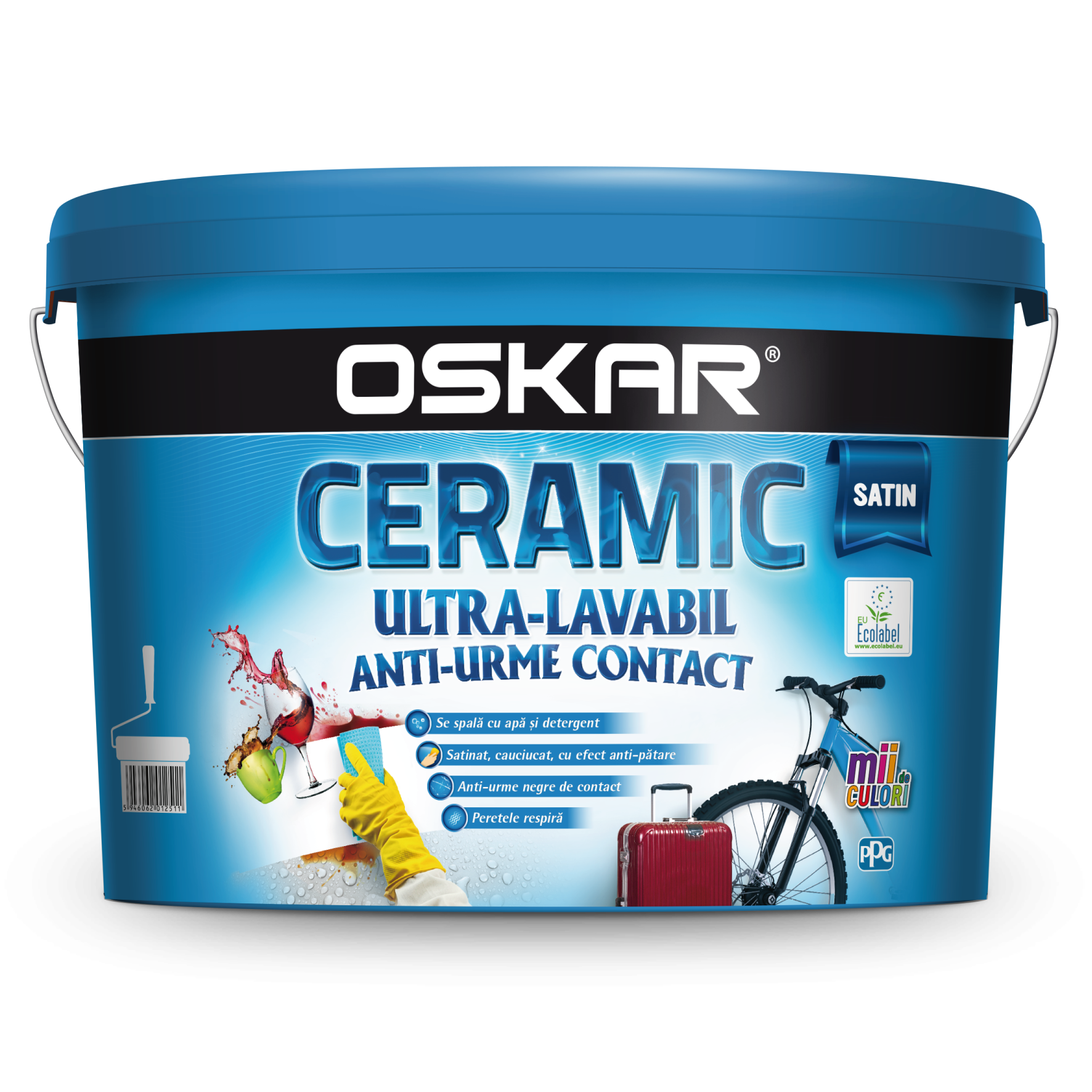 Vopsea ultralavabila Oskar Ceramic satin, interior/exterior, alb, 8,5 L